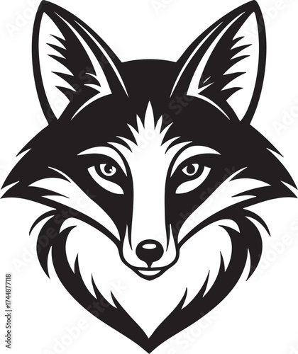 Obraz premium Black vector illustration of a wolf head or fox head tattoo design, depicting...