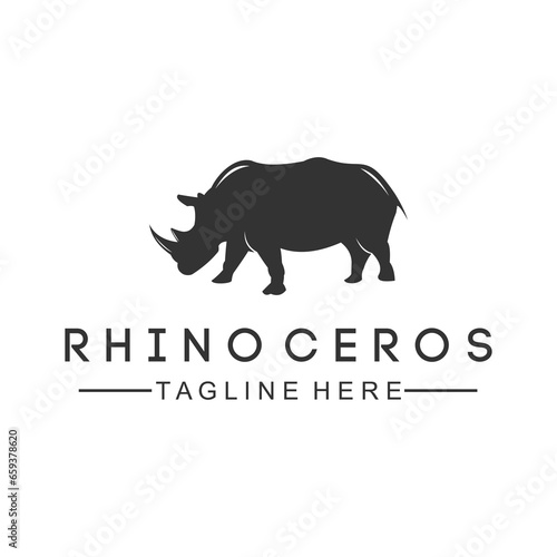 © Slamet, Obraz premium black vector image of a rhinoceros animal on a white background.