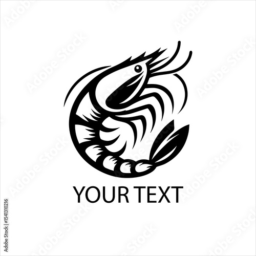 Obraz premium Black Vector Shrimp Logo Isolated on White Background for Seafood Branding