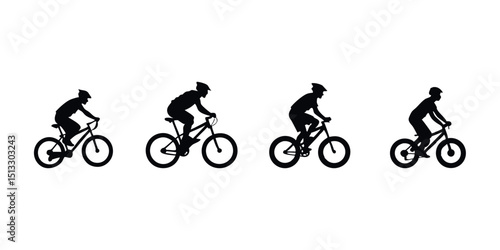 Fototapeta premium Black vector silhouette of a cyclist riding a mountain bike