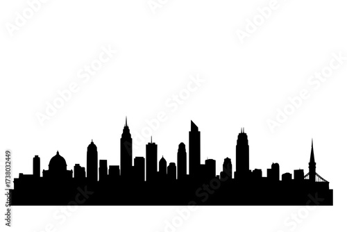 Naklejka premium Black Vector Silhouette: random Minimalist City Skyline with Iconic Buildings