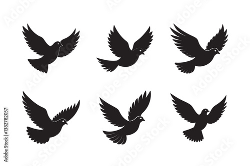 © MA, Obraz premium Black vector wings silhouette set, dove feather art