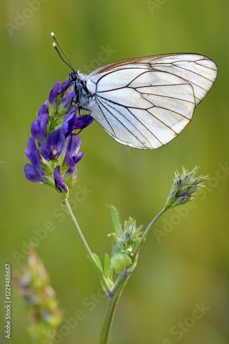 © Robert Seitz/imageBROKER, Naklejka premium Black-veined white (Aporia crataegi) on a flower