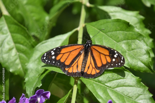 © dejavudesigns, Naklejka premium Black Veined Winged Monarch Butterfly in a Garden