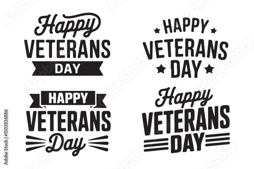 © SaymaHossan, Fototapeta premium Black veteran's day lettering set, vector illustration,