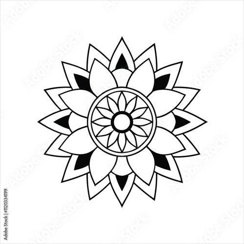 © abdurrashid, Naklejka premium Black Vintage Mandala Floral Line Art Vector Design