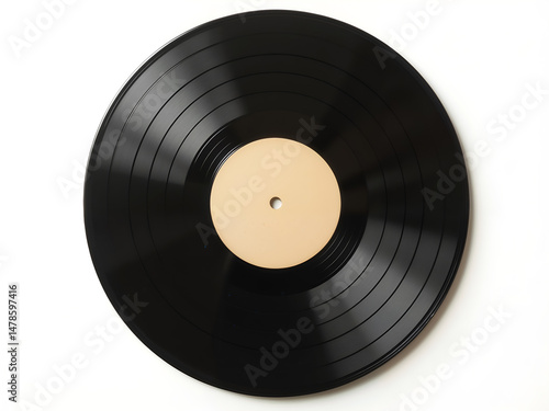 © figi, Obraz premium Black vinyl record disc isolated on white, retro music media concept. Generative AI