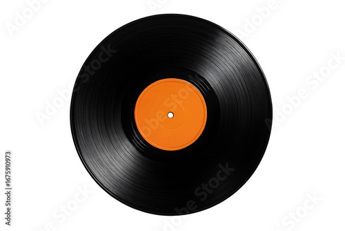 © MehediHasan, Fototapeta premium Black Vinyl Record Disc with Orange Label Isolated on Transparent Background