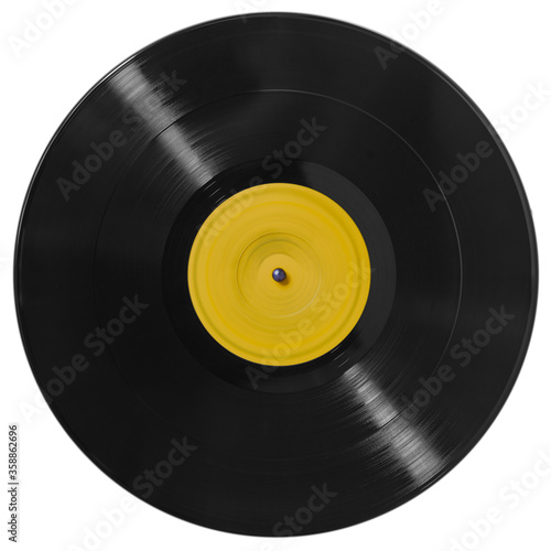 © Oleksiy, Obraz premium Black vinyl record on a white background, isolated.