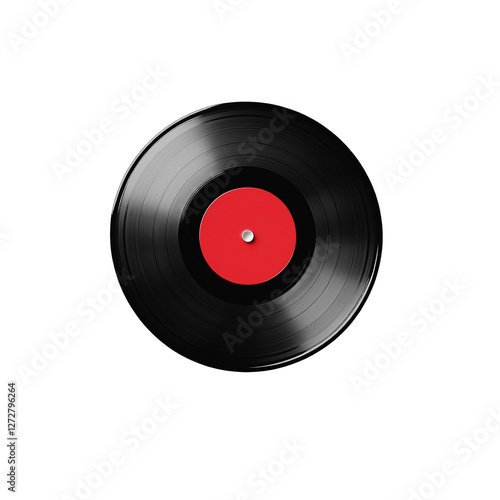 Obraz premium Black vinyl record red label music analog sound nostalgia