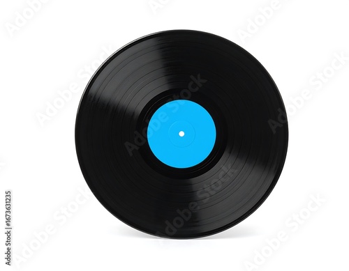 © Ajissya, Fototapeta premium Black vinyl record with a vibrant blue center