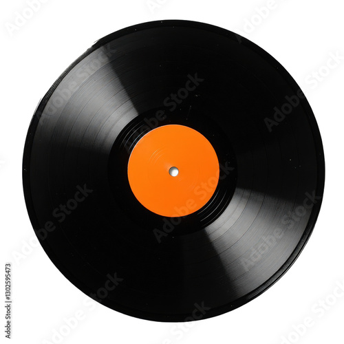 Obraz premium Black Vinyl Record with Orange Label and transparent background