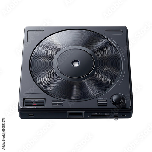 © Sabad, Fototapeta premium Black Vinyl Turntable Minimalist Design DJ Equipment Audio Technology on transparent background