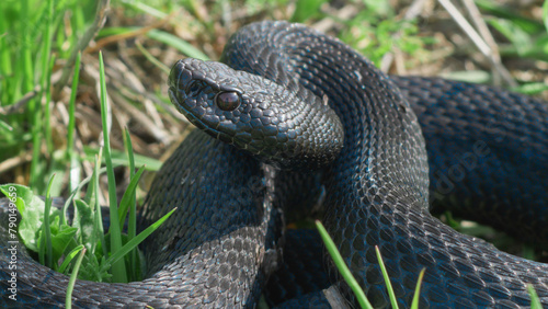 Fototapeta premium Black viper (Vipera berus nikolskii) ready to bite