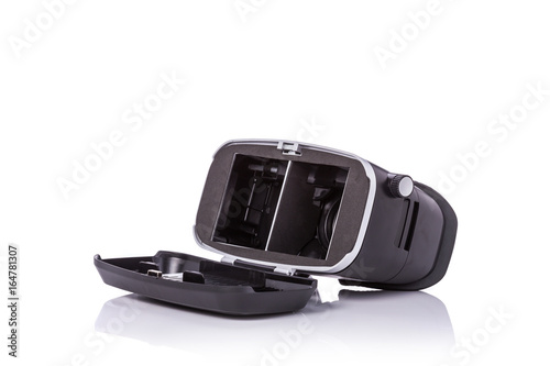Fototapeta premium Black virtual reality glasses. Studio shot isolated on white background