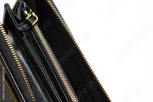Obraz premium black wallet open over white background