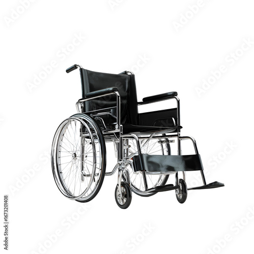 © Sadia, Fototapeta premium Black Wheelchair on Black Background Medical Equipment Mobility Aid