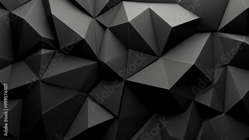 © Fathor, Obraz premium Black white dark gray abstract background. Geometric pattern shape. Line triangle polygon angle. Gradient. Shadow. Matte. 3d effect. generative ai