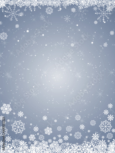 © Design Field, Naklejka premium Black-White grunge Christmas background, Christmas wishes background, Winter Snowfall Christmas background, Flying snow flakes and stars on winter Black-White background. snowflake template.
