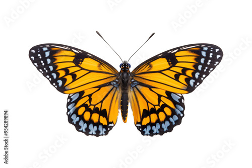Fototapeta premium Black, white, red butterfly wings spread open. Suitable for nature, beauty,...