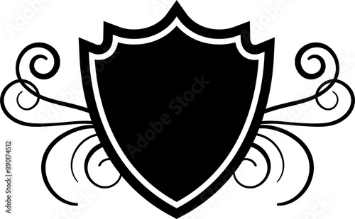 © Chathurika, Fototapeta premium Black & white shield emblem with floral decoration