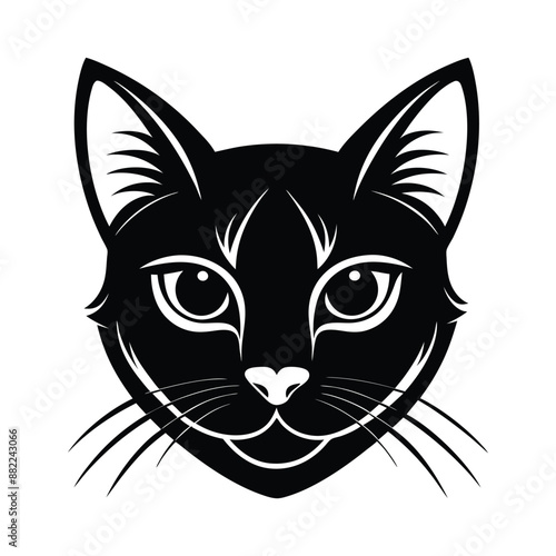 Obraz premium Black & White Silhouette Vector of Cat Face, Minimalist Cat Head Illustration