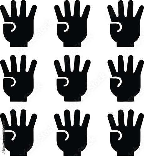 © Ridoy-Art , Obraz premium Black & White Vector Graphic of Multiple Hands Showing Number Four | Counting Illustration | Simple Hand Gesture Icon Set