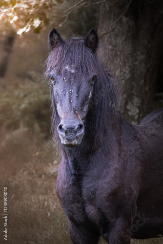 © Frycu, Fototapeta premium Black wild horse in the forest