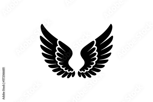 © Top Stock 4u, Obraz premium Black Wing Silhouette with Detailed Feathers on a White Background