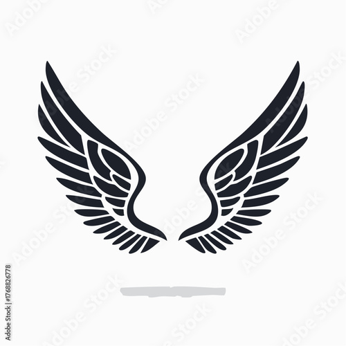 © Nanik, Fototapeta premium Black Wing Silhouette with Feathered Details and Shadow.