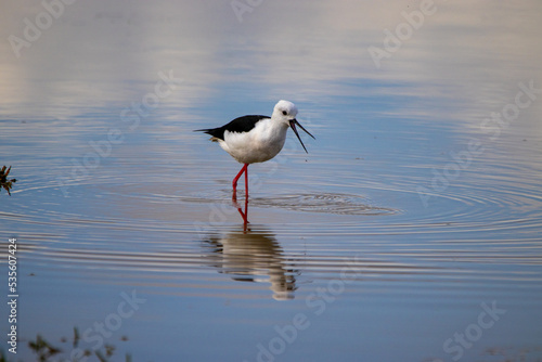 Fototapeta premium Black-wing Stilt wading in the Estuary