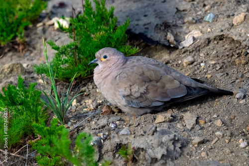 Obraz premium Black-winged Ground Dove Resting on Rocky Patagonian Terrain