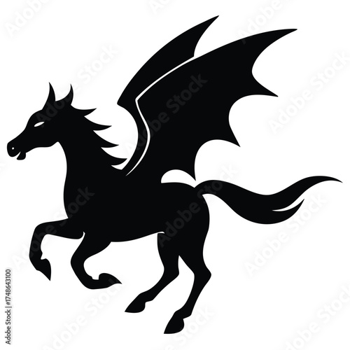 Fototapeta premium Black winged horse silhouette pegasus mythical creature