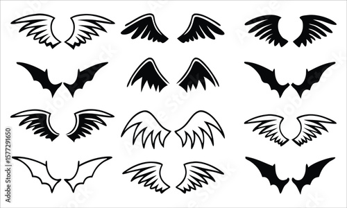 © MdShahrier, Fototapeta premium Black wings collection graphic illustration