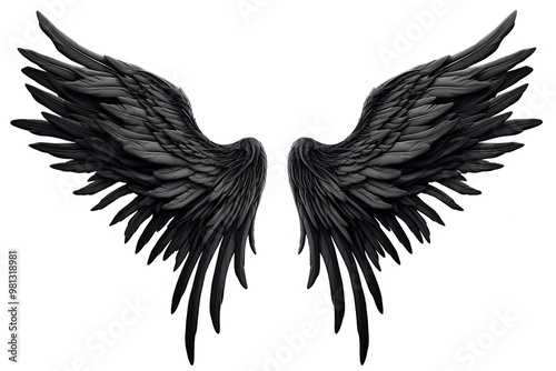 © Alexandra, Obraz premium black wings on white background. Generative Ai