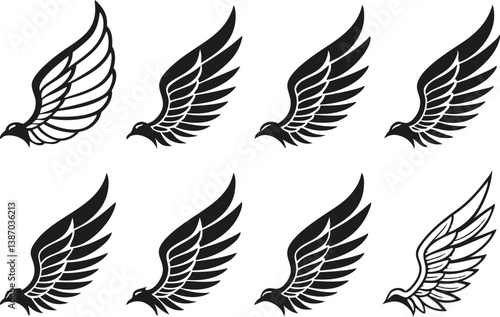 Fototapeta premium Black wings silhouette vector design set.