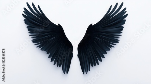 © Zeva, Naklejka premium Black wings spread, white background, freedom concept, design element
