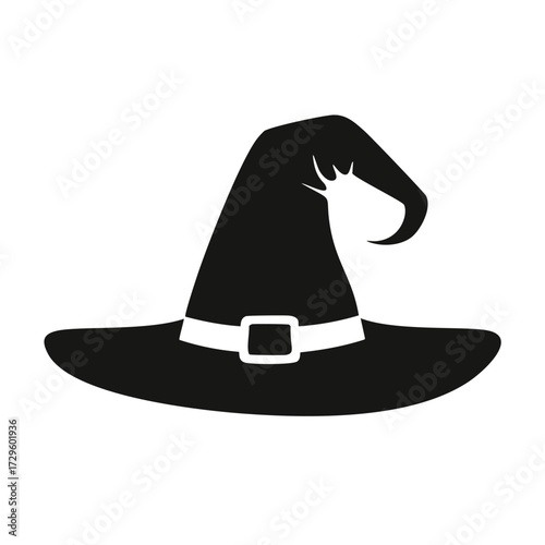 © MrFahim, Naklejka premium Black witch hat with buckle and pointed top halloween