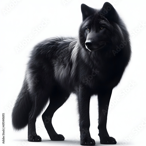 © Erick F. Lopez Felix, Fototapeta premium black wolf close up, aislado con fondo blanco