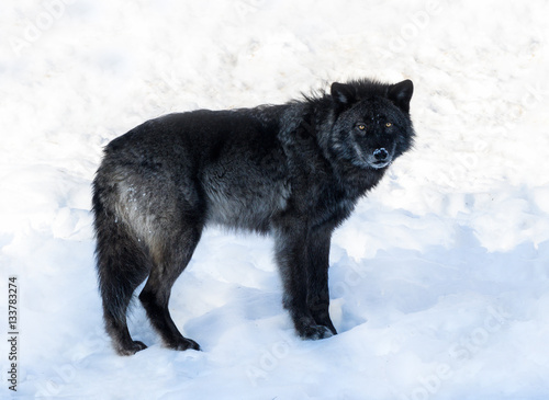 Naklejka premium Black Wolf in Winter