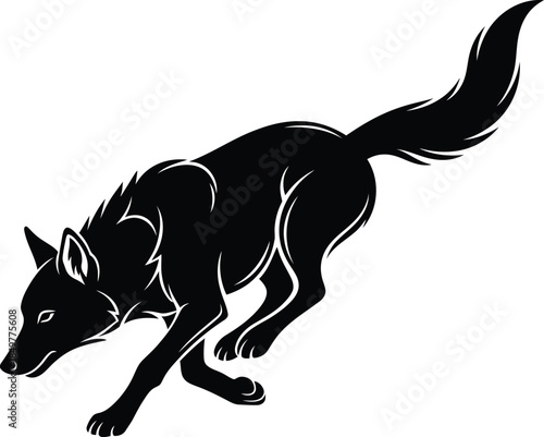 Fototapeta premium Black Wolf Silhouette Running Wild in Nature