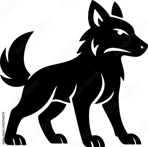© Amir, Fototapeta premium Black Wolf Silhouette Vector | Standing Fierce Wolf Graphic Design"