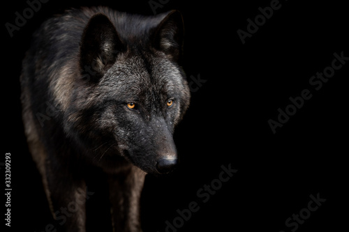© AB Photography, Obraz premium Black wolf with a black background