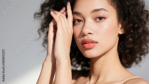 Obraz premium Black Woman with Hand Near Face in Natural Light