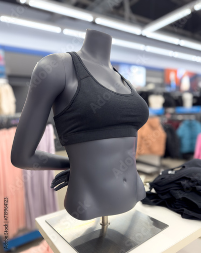 Fototapeta premium Black women's T-shirt on a mannequin in the marke