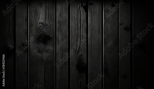 Fototapeta premium Black wood, background texture. Dark wooden surface. Generative AI