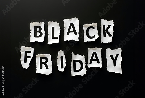 © Maryna, Obraz premium Black words BLACK FRIDAY written on white torn paper on a black background