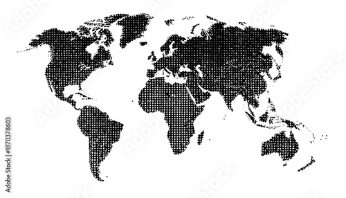 © Nafees, Obraz premium Black world map on white background with halftone effect