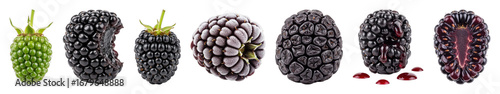 Obraz premium Blackberry set including unripe, ripe, frozen, shriveled, juicy, and halved...