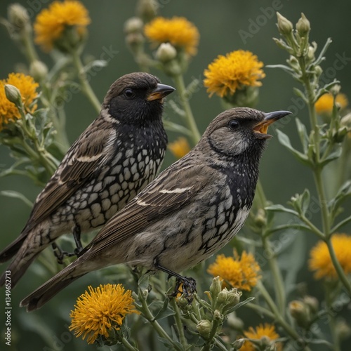 © M, Fototapeta premium blackbird on a flower